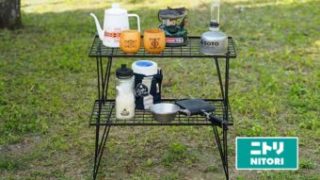 ニトリの「折りたたみアウトドアラック」 キャンプで直接地面に直置きしたくないあれこれを載せ ...
